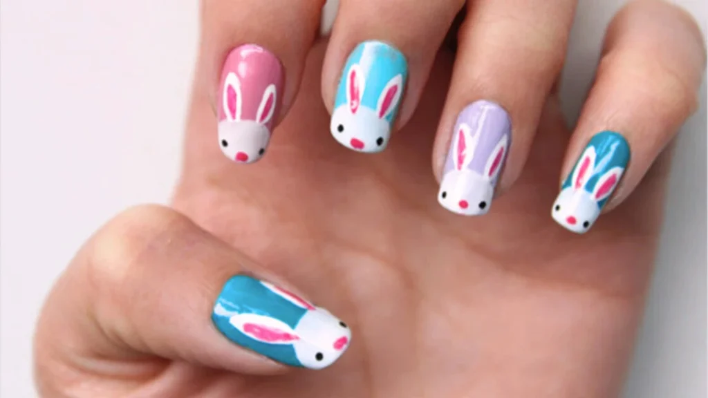 f you love Kawaii or pop culture themes, tiny characters and emojis are totally in. Smiley faces, mini clouds, stars, hearts, or your favorite cartoon character in miniature size are fun and expressive.Love with this cute rabbits. Aren’t they trendy short nailart designs?