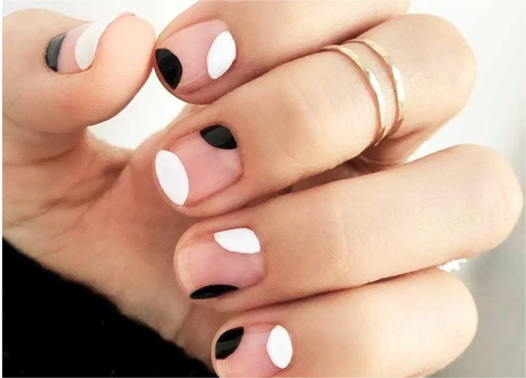 Tip: Try pairing nude or pale pink base with black or metallic lines for a modern finish.